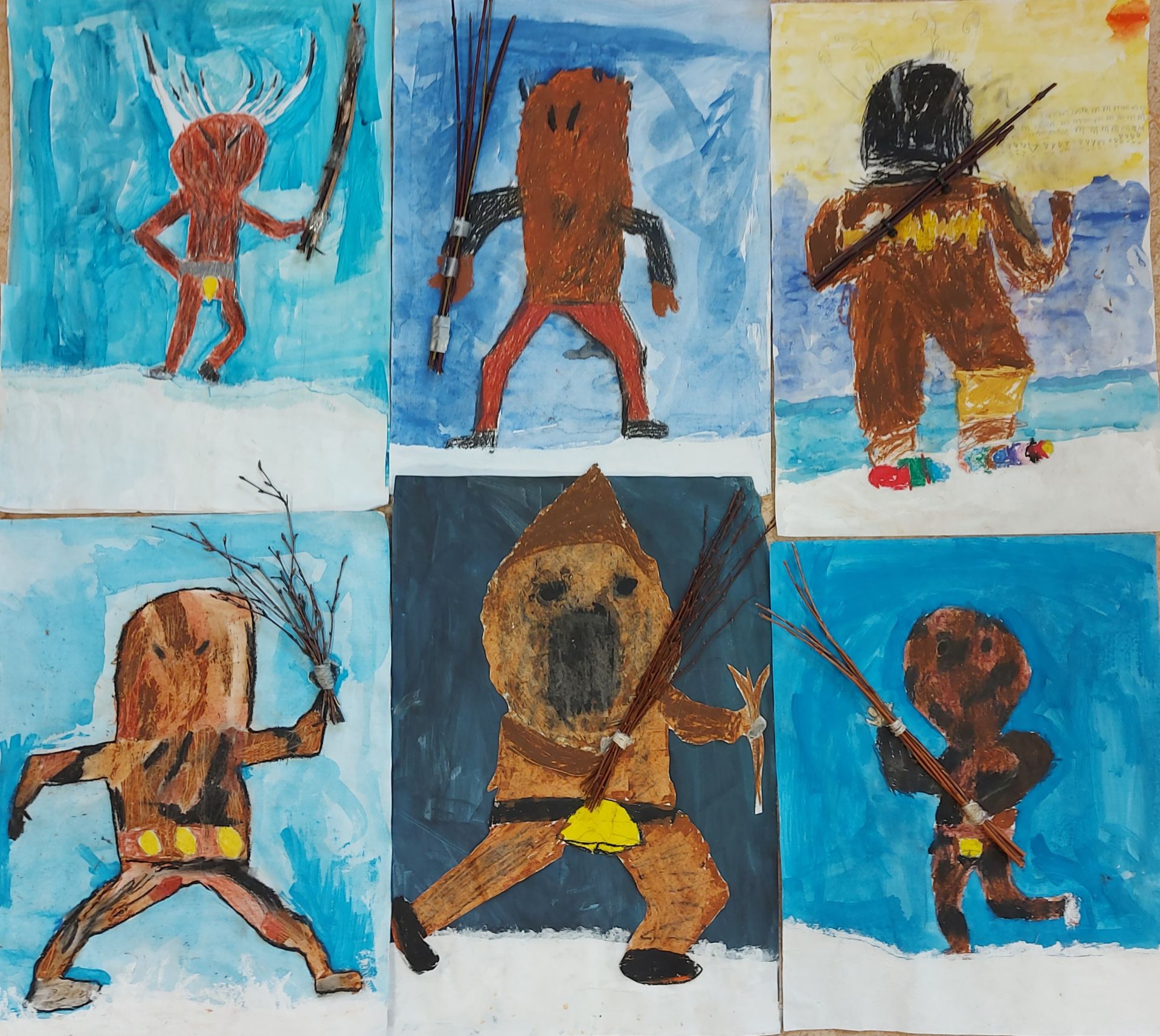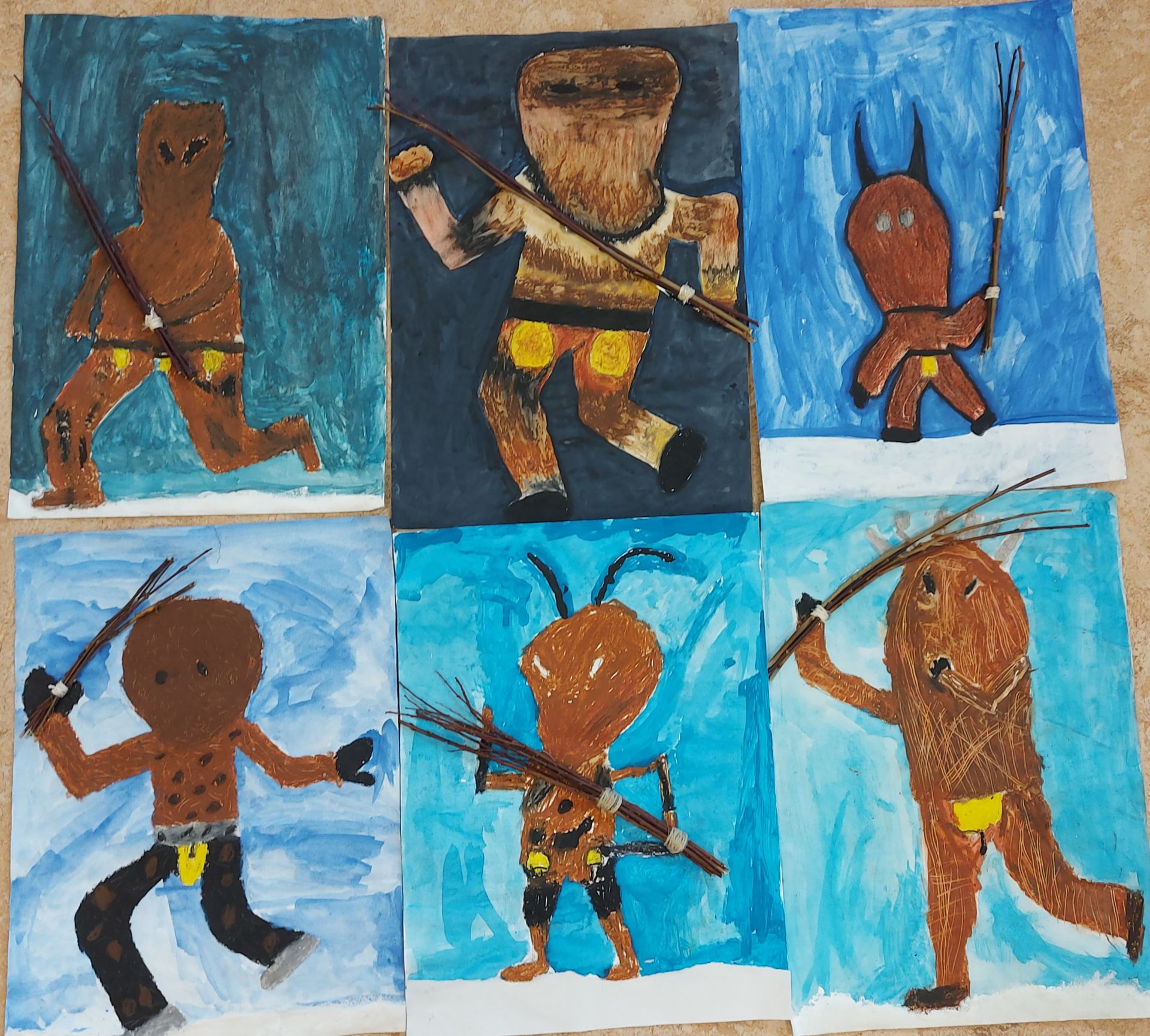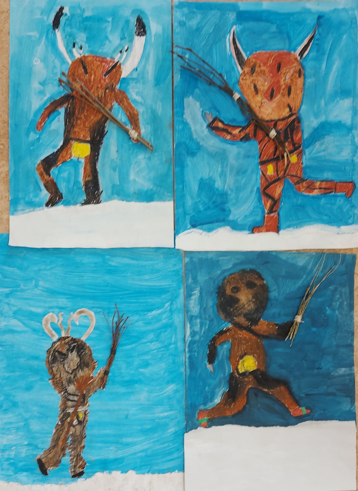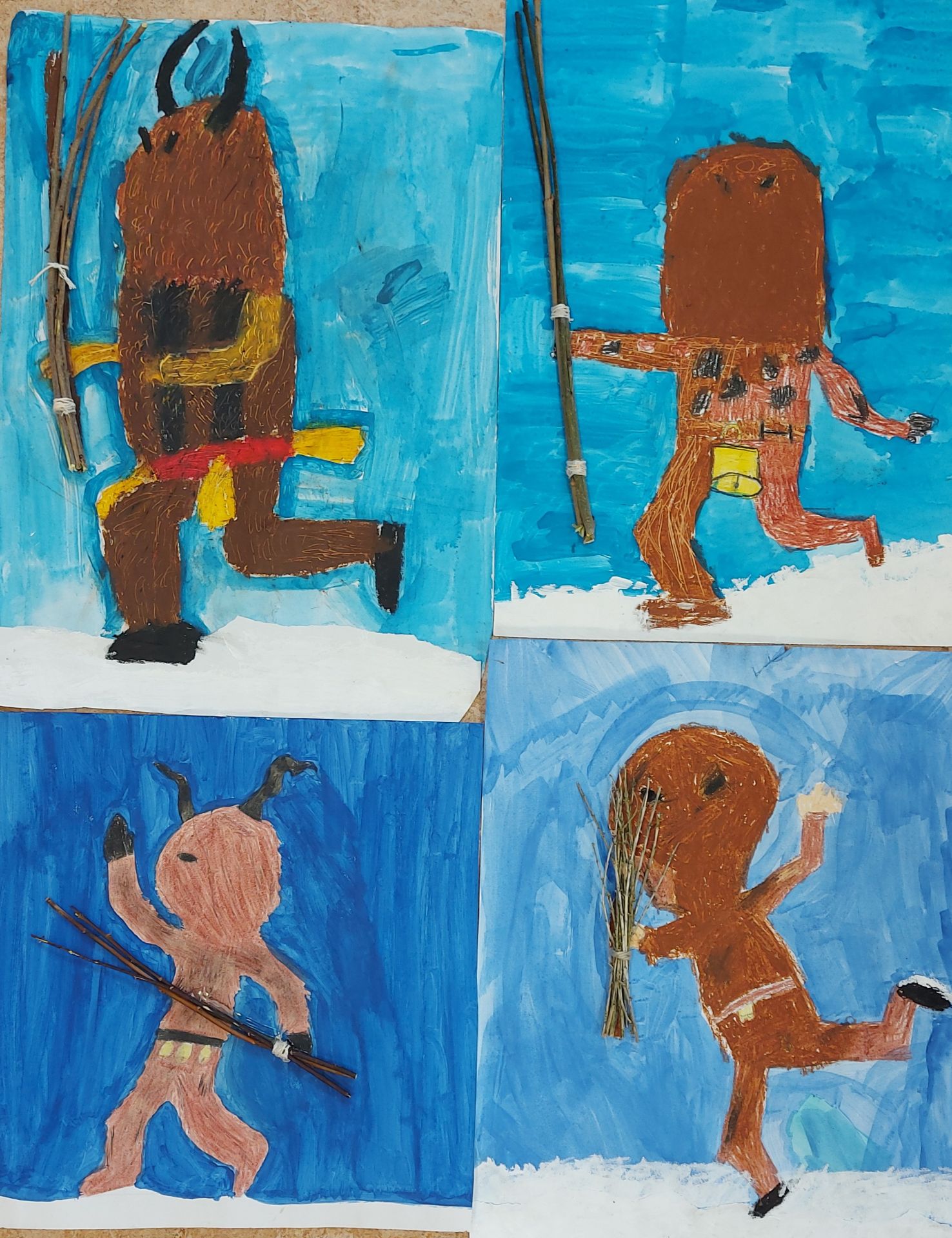 Menschen haben Gelenke und können sich bewegen. Wie man das zeichnen kann haben die Kinder der Klasse 3a im Kunstunterricht mit Gelenkpuppen anschaulich geübt. Das Gelernte konnten sie dann beim spannenden Thema „Klöüsezit“ umsetzen.