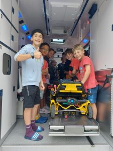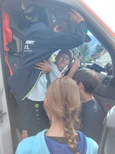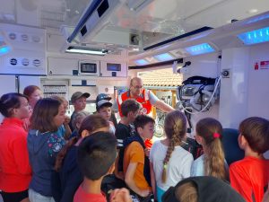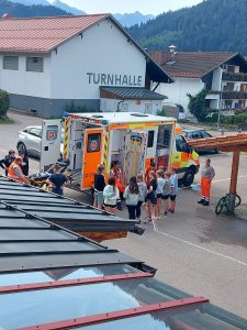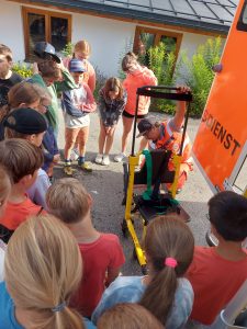 Diese großartige ehrenamtliche Tätigkeit wurde heute belohnt. Thorsten Mühlegg und Benni Kühnle von den Johannitern kamen mit einem Rettungswagen direkt auf den Schulparkplatz gefahren. Dort zeigten sie den neugierigen Kindern anschaulich alles, was in und an so einem Krankenwagen steckt. Natürlich beantworteten sie auch geduldig alle Fragen. Zum Abschluss gab es außerdem für jeden noch ein leckeres Eis!